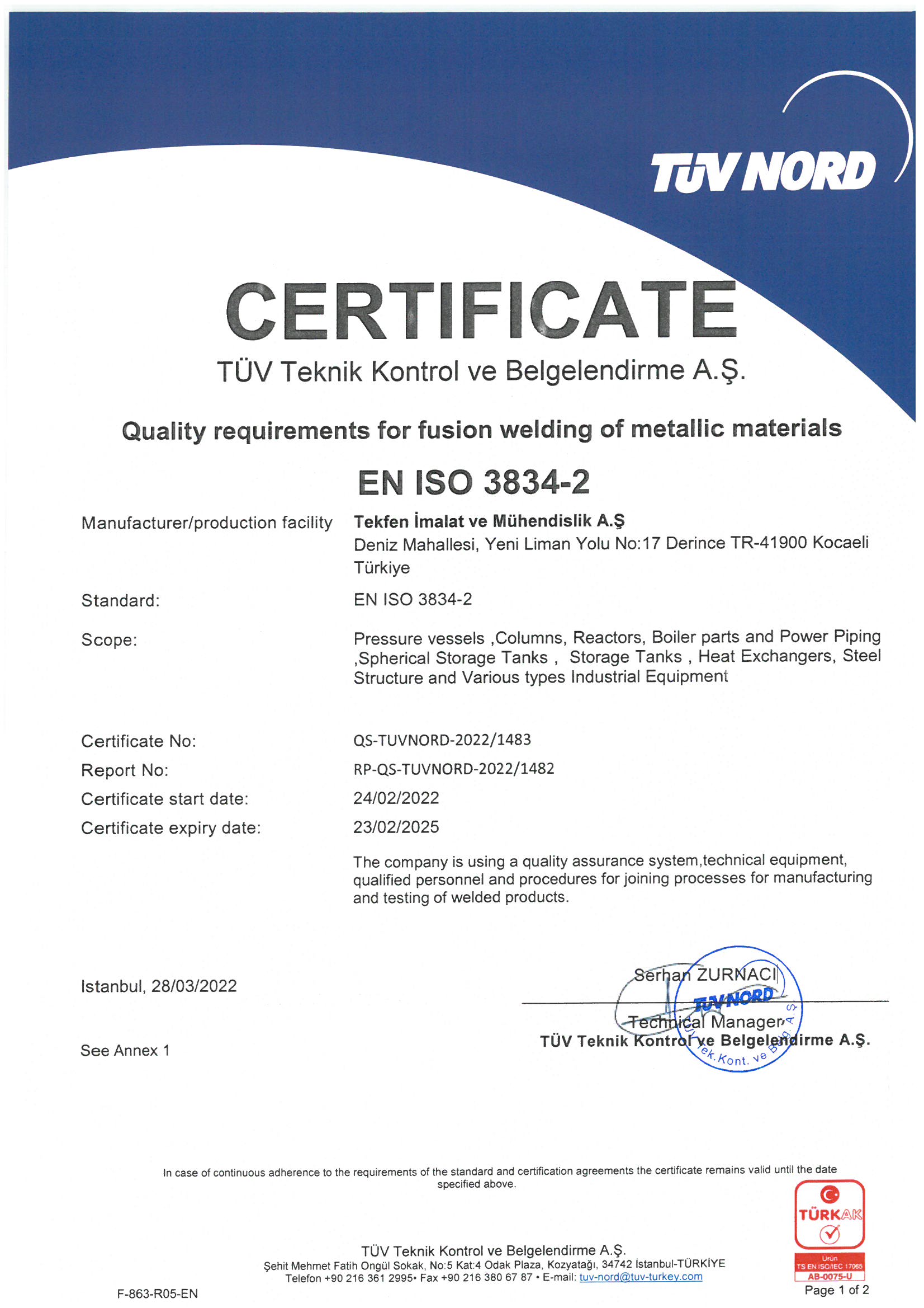 EN ISO 3834-2 ve 204/68/EU